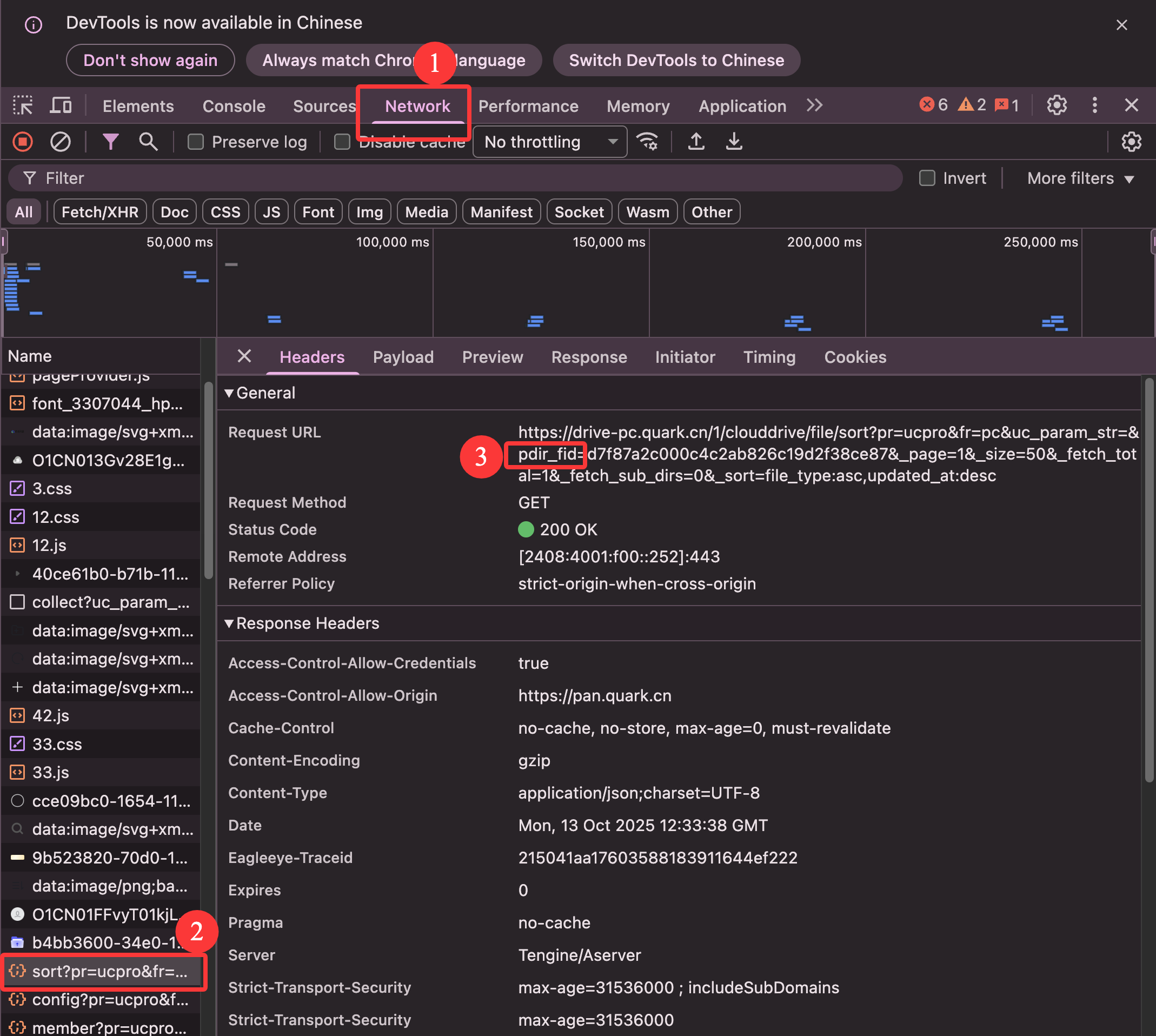 夸克网盘只需要登录https://pan.quark.cn获取Cookie和pdir_fid1,上面网页登陆成功后,进入需要挂载的文件夹内,按键盘F12,...